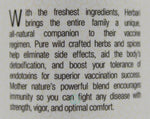 A Unique All Natural Companion to Their Vaccine Regimen. Pure Wild Crafted Herbs and Spices Help Eliminate Side Effects, Aid the Body's Detoxification, and Boost your Tolerance of Endotoxins for Superior Vaccination Success.