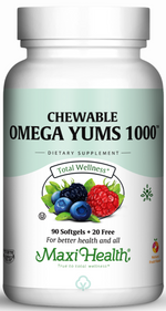 Maxi Health Research® is proud to provide you with our delicious tasting Omega Yums 1000™. The fish oil is encapsulated in a kosher, vegetarian soft gel, suitable for children, which can be chewed, punctured for the oil, or swallowed whole. It easy to digest and has no aftertaste.