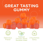 EASY TASTY FIBER - F is for Fiber gummies from Zahler Chapter One contain 3.3 grams of fiber per serving. Most of us don't get enough natural fiber from our diets. Now you and your family can instantly add natural chicory root soluble fiber to your diet with just two delicious gummies per day.
