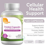 CELLULAR HEALTH - Inositol promotes cellular health and liver function. Participates in the metabolism of fat in the liver and promotes cellular health and energy. Inositol supplements can be taken just before eating.