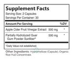 These apple vinegar pills are packed with 500 mg of SunFiber, providing the dual benefits of fiber alongside ACV, and formulated to support healthy digestion and regularity, making it a go-to solution for various digestive health needs and challenges.